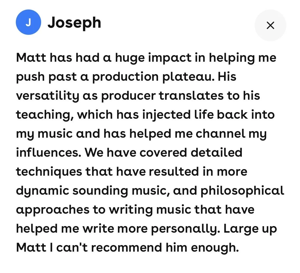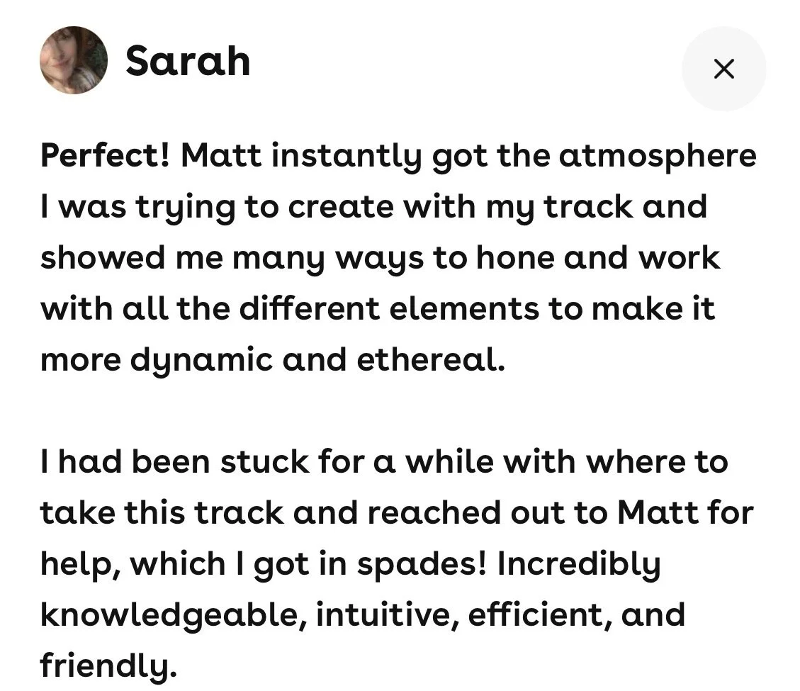 A focused session built around your music and workflow. Bring a track, a problem, or a question. Leave with clarity and next steps.